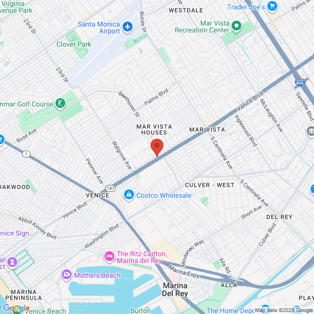 The building is labeled "CLINIC." There is free street parking on Venice Blvd. and around the corner on Greenwood Ave. and surrounding streets.